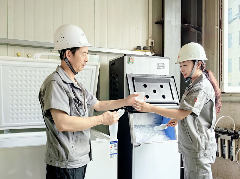 總經理趙衛朋在車間配備一臺全自動制冰機,用以改善夏季車間生產條件,這贏得了職工們的“大拇指”。他安排專人提前將冰塊裝入密封塑料杯,并保存在冰柜中,以便發放到一線職工手中。