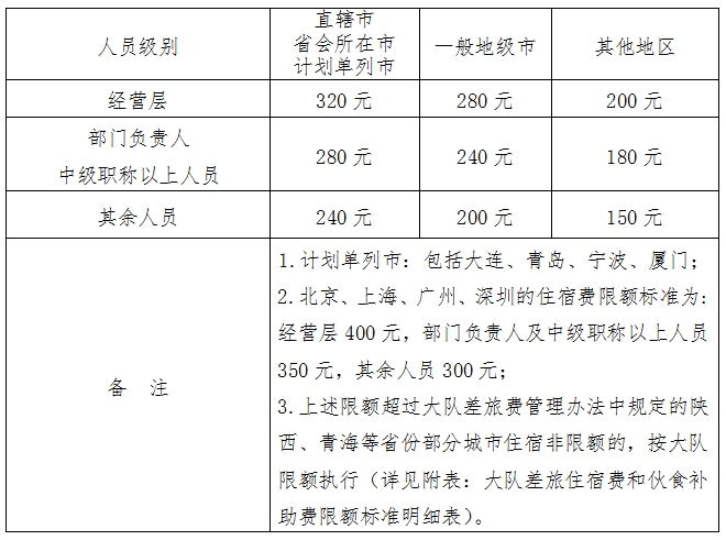 第十一條 住宿費是指工作人員因公出差期間入住賓館(包括飯店、招待所)發生的房租費用。只允許住單間或標準間。差旅住宿費限額標準見下表: